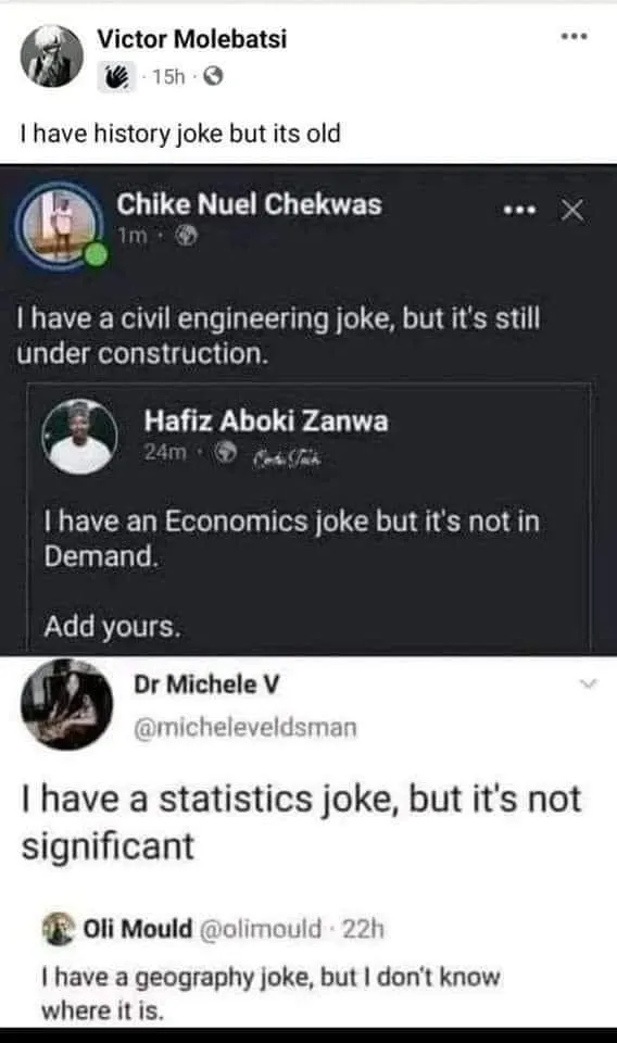 首先我比較好蒐集靈感,無論是對這些笑話迷因的回饋或反思都是不錯的素材。像今天我就從 The Language Nerds 找到很有趣的圖片,用行話玩文字遊戲。